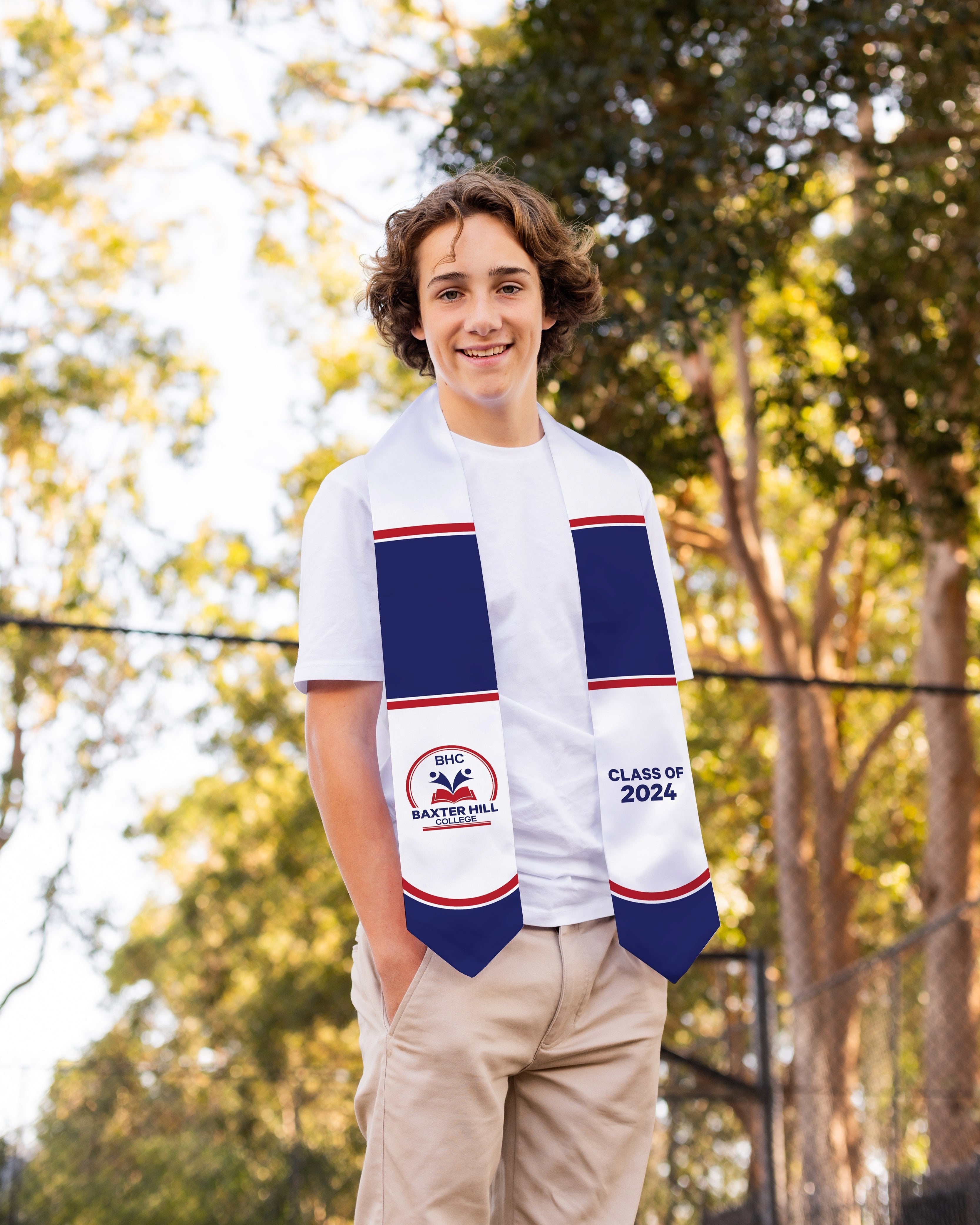 We create custom graduation sashes and stoles to suit your colours and branding. Our designers can provide you with a variety of options or work with you to bring your own design to life.
